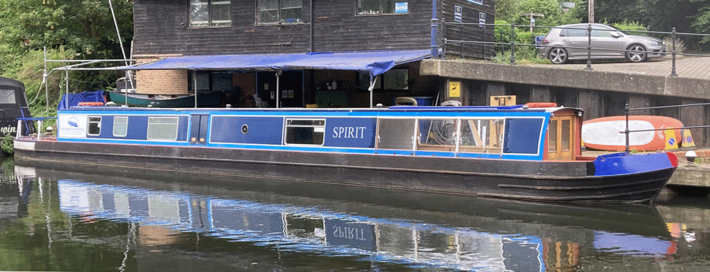 Spirit is our full length narrowboat with disabled/wheelchair access using hydraulic lifts at the front and rear. She is mainly used as a trip/day boat and is centrally heated with a part-carpeted open plan interior and folding chairs. There is a roomy area to accommodate up to six wheelchairs and six adults. She has two toilets one of which is large enough to take a wheelchair and carer comfortably, a small well equipped fitted kitchen with fridge, hot and cold water, and is ideal for self-catering.